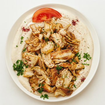Your choice of juicy beef or chicken shawarma, served over our classic hummus. The savory, spiced meat pairs beautifully with the smooth dip, creating a rich and filling appetizer or small meal.