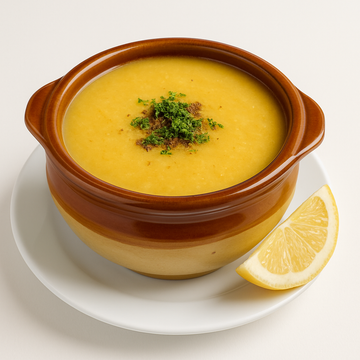 A warm, comforting soup made from slow-simmered red lentils, carrots, onions. Seasoned with traditional Mediterranean spices—earthy, nourishing, and packed with flavor.